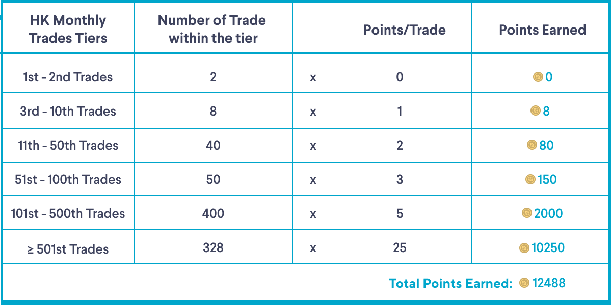 b. Example : If you complete 910 HK trades in February, you will earn 12,488 SoFi Points.