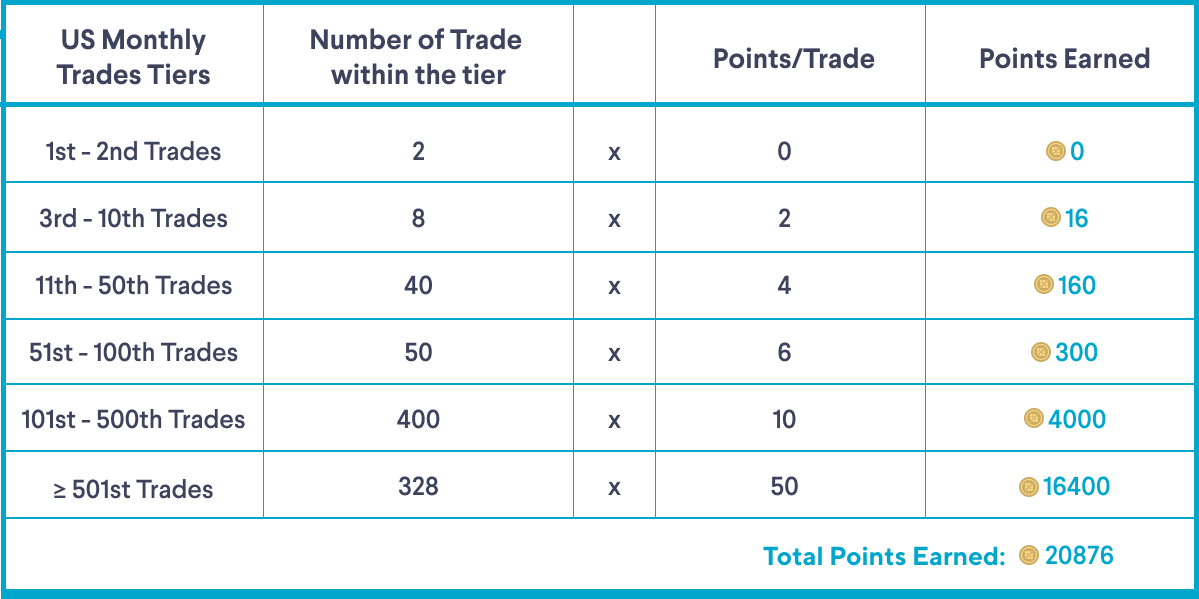 b. Example : If you complete 828 US trades in February, you will earn 20,876 SoFi Points.