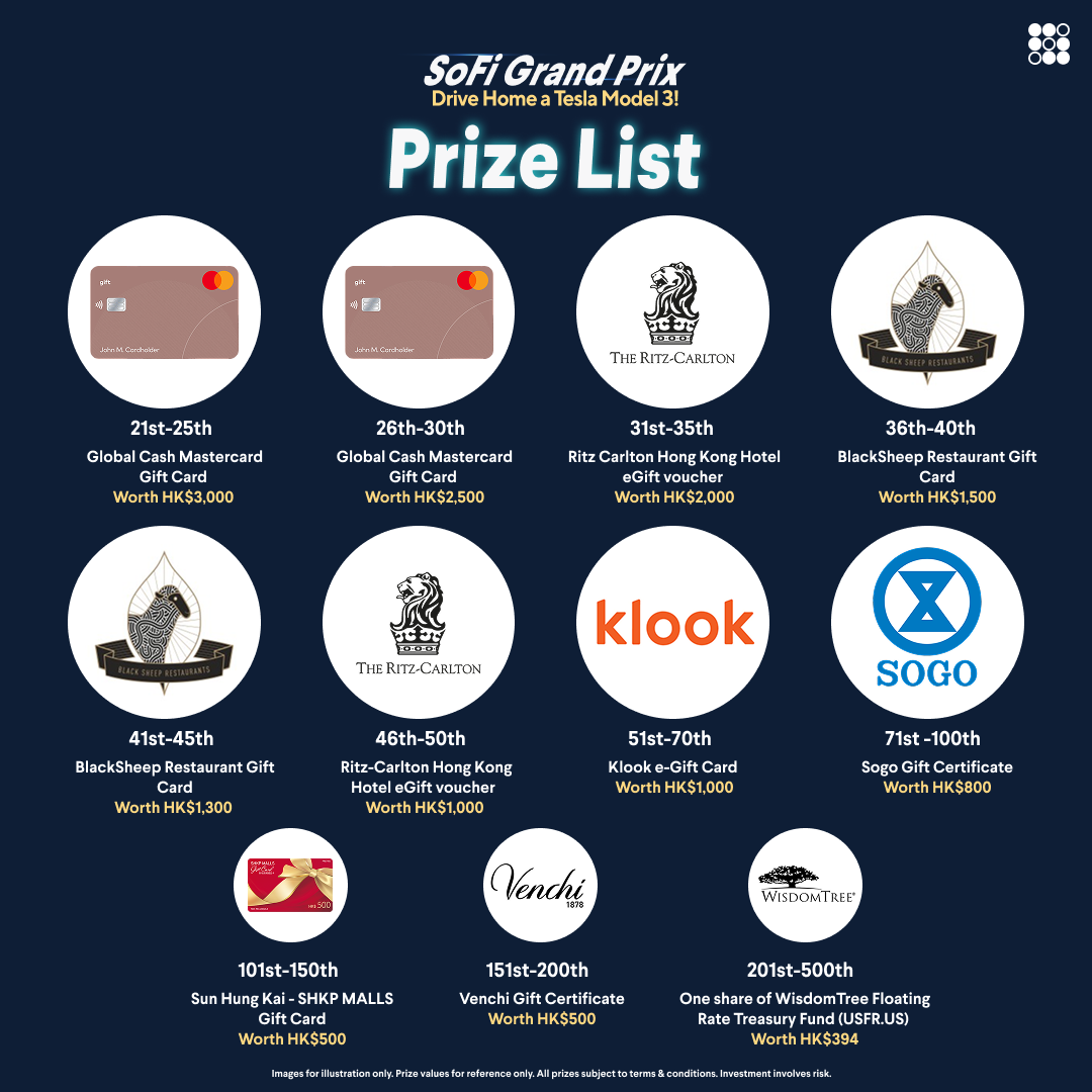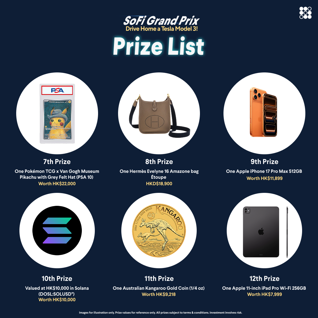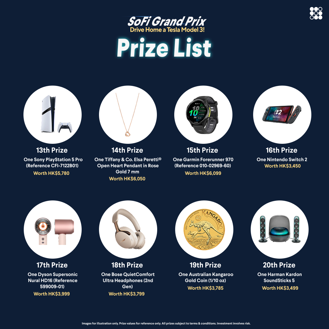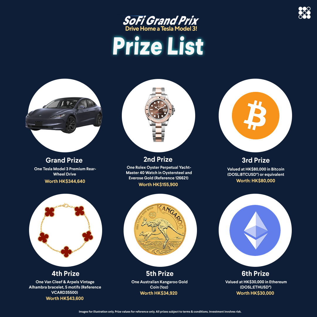 *Prize values for reference only. All prizes subject to The SoFi Grand Prix Promotion Terms & Conditions