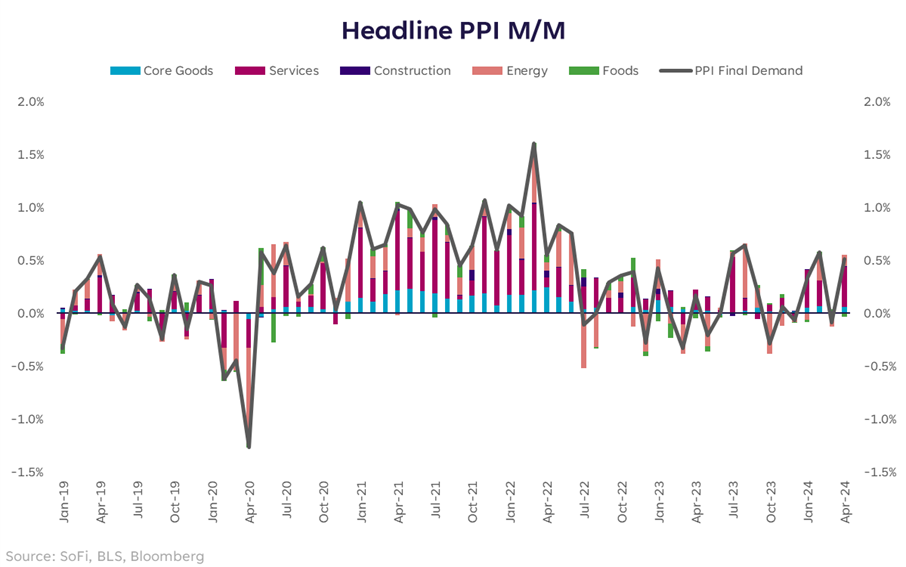 Although CPI data will steal the headlines for the week, it’s been a mixed bag of inflation data with the Producer Price Index (PPI) for April showing hotter-than-expected data. The PPI measures average selling prices received by producers (including retailers) whereas CPI measures the prices paid by consumers.