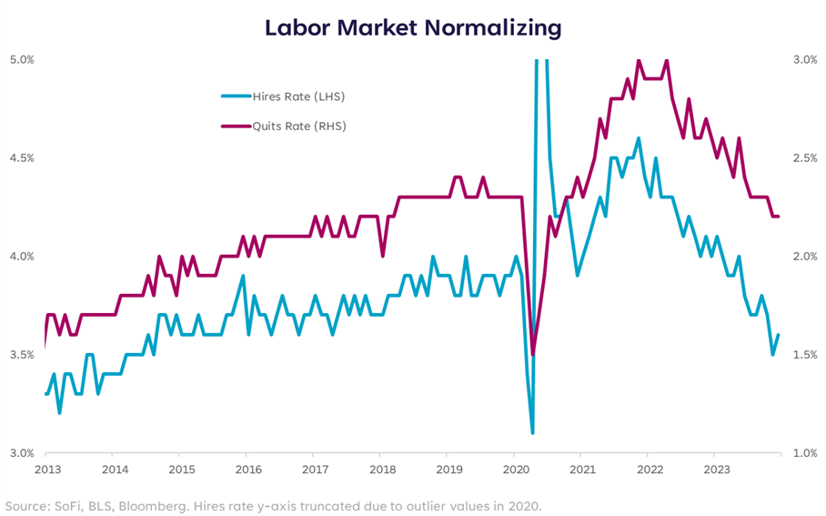 However, given the region’s importance to global energy supply, a much greater supply shock could occur if the current conflicts were to broaden. It could push energy prices meaningfully higher, and as we saw in 2022, a sharp rise in energy prices can have major spillover effects. Supply-side healing helped the Fed get inflation down without much labor market pain, but further shocks could dash its hopes for a soft landing.