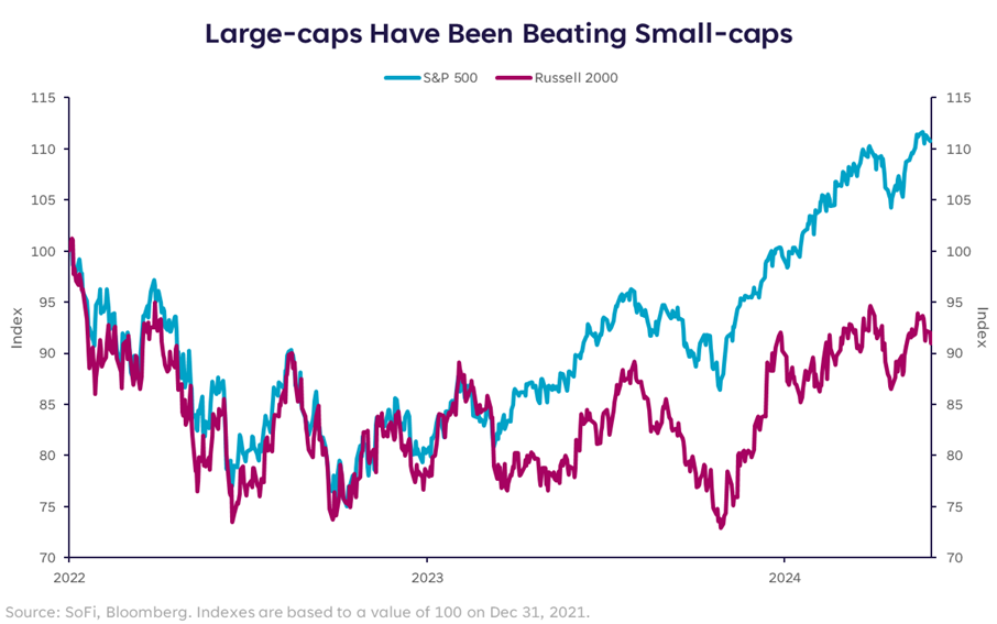 While protagonists sometimes emerge all on their own, they often need some help. The same might be true for small-caps: They certainly could emerge in this environment and outperform large-caps, but it would be hard for that to happen if the macro backdrop doesn’t shift. Some developments that would probably help small-caps relative to large-caps would be the Federal Reserve cutting interest rates – absent meaningful economic weakness – or some air coming out of the AI theme that could allow small-caps to catch-up.