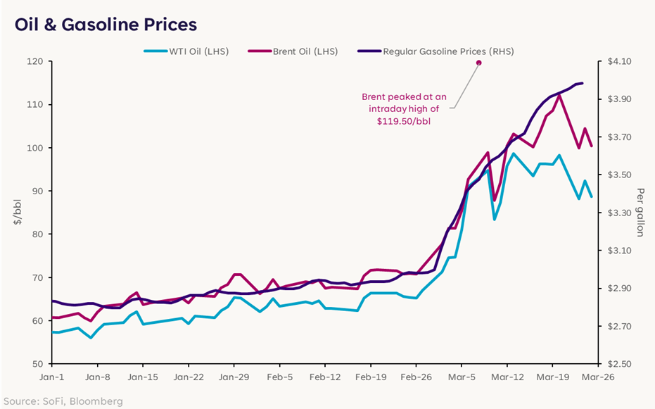 Brent crude oil was roughly $72/bbl before the war began, it rose to an intraday high of $119.50/bbl on Mar. 8, and is still over $100/bbl as of Wednesday. But since most of us are not buying barrels of oil on the open market, it’s more useful to look at how those prices affect the cost of things like gasoline and airfare to understand how it flows through to consumers.
