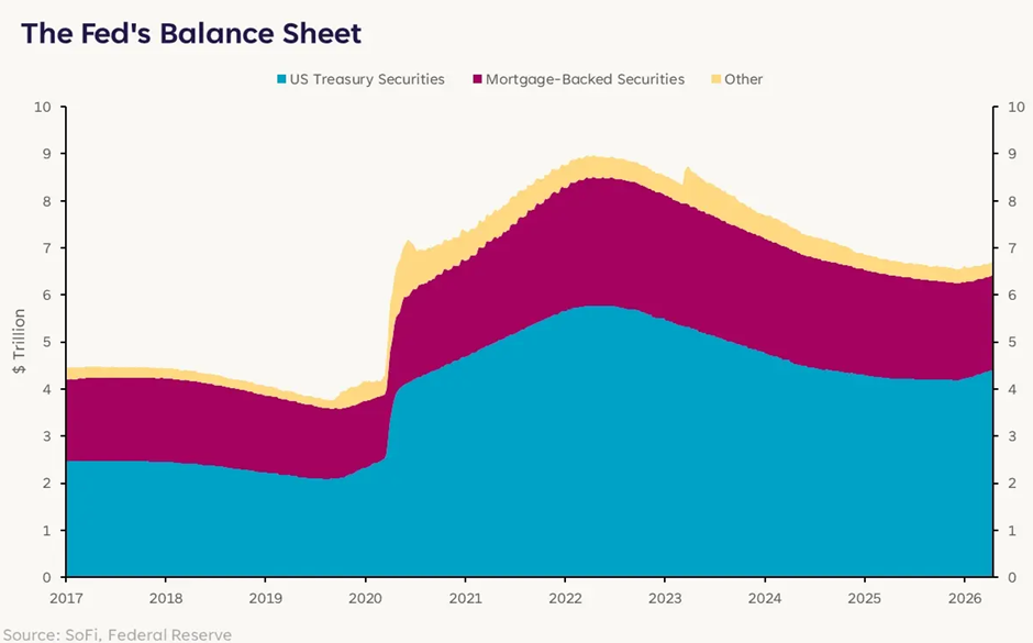 The widely held expectation is that Warsh will be dovish on rates, and hawkish on the balance sheet. In other words, he may lean toward cutting rates, but also toward shrinking the balance sheet… which in some ways, has an offsetting effect on lower rates. He’s been quite vocal about the balance sheet issue and I would expect that to remain a central focus as he begins his chairmanship. The Fed’s balance sheet currently sits at $6.7 trillion. Warsh has not indicated a target size, other than saying he’d like it to be smaller.