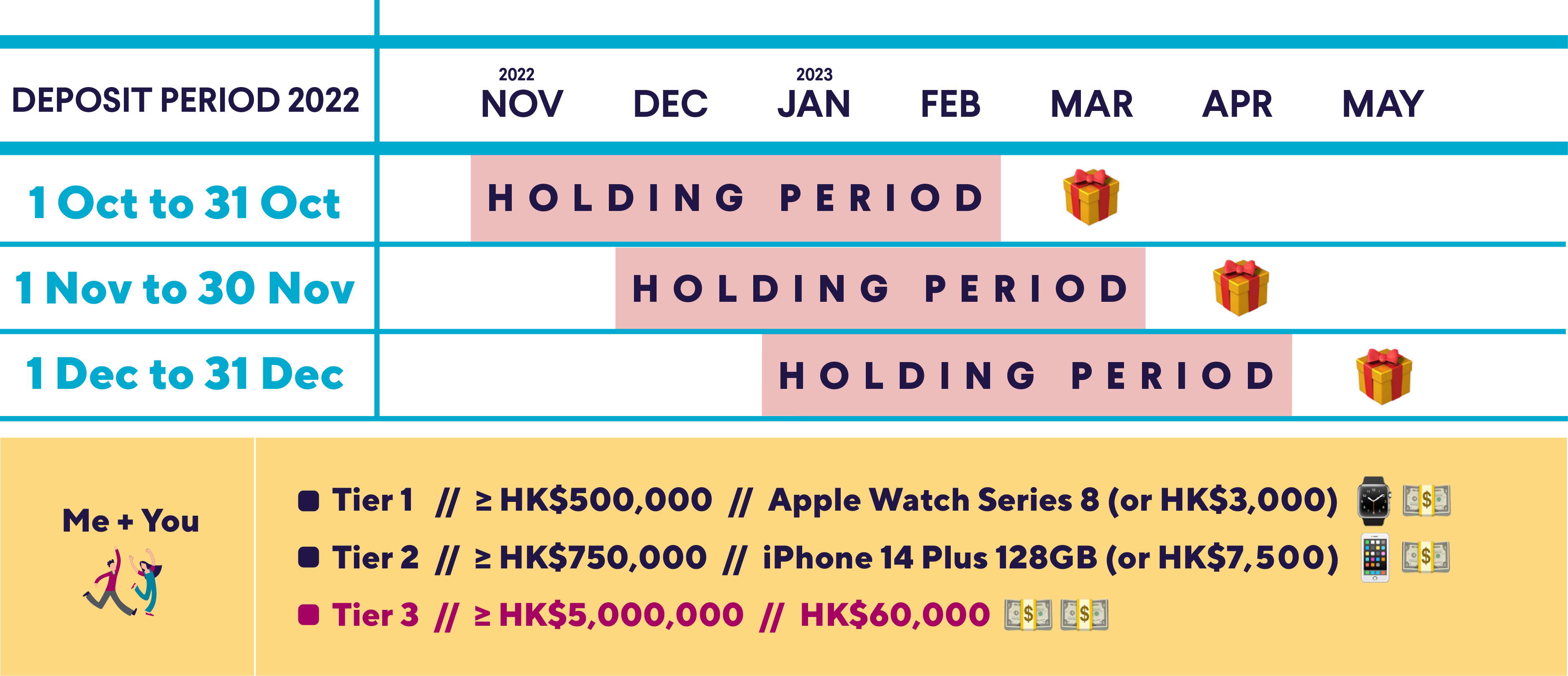 You transfer in ≥HK$750,000 cash and/or stock and hold for 4 months -> you get HK$6,000 cash. - Tier 3: