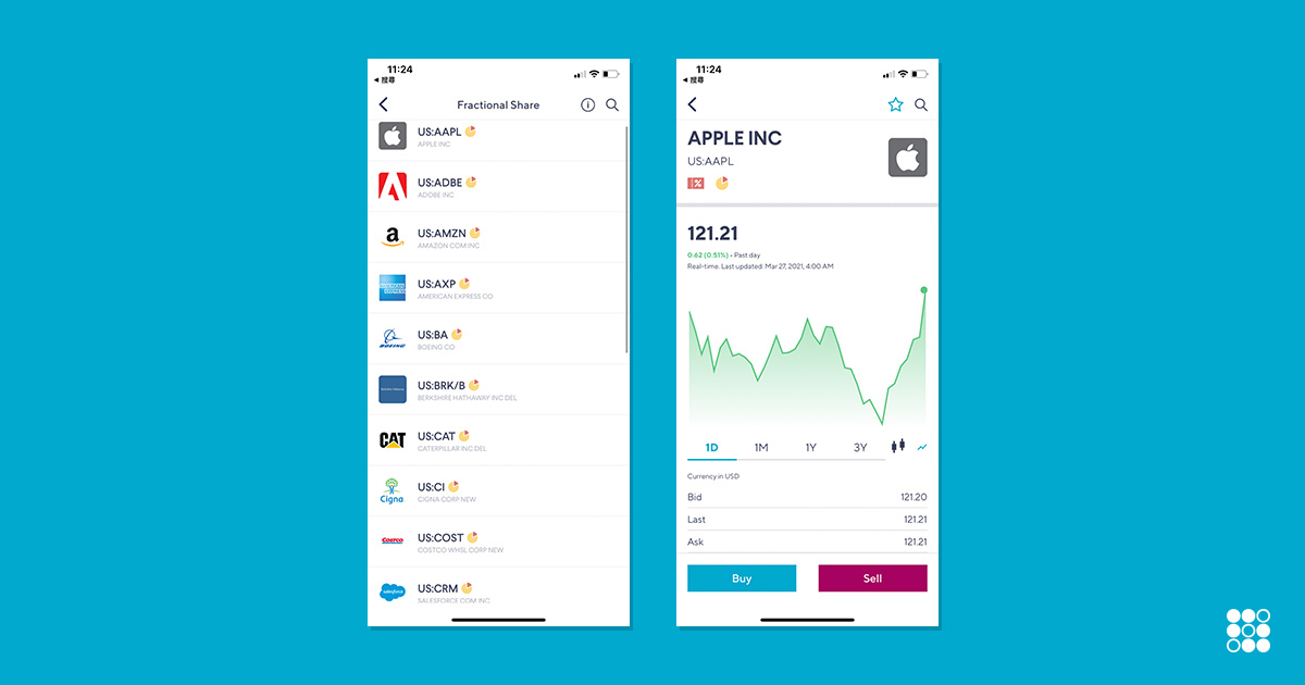 We are thrilled to announce that we have launched Fractional Shares! Starting today, Cash Account members can buy fractional shares from 40 leading U.S companies for as little as US$10 each! Now owning stocks like Amazon, Tesla, and Apple is affordable for everyone.