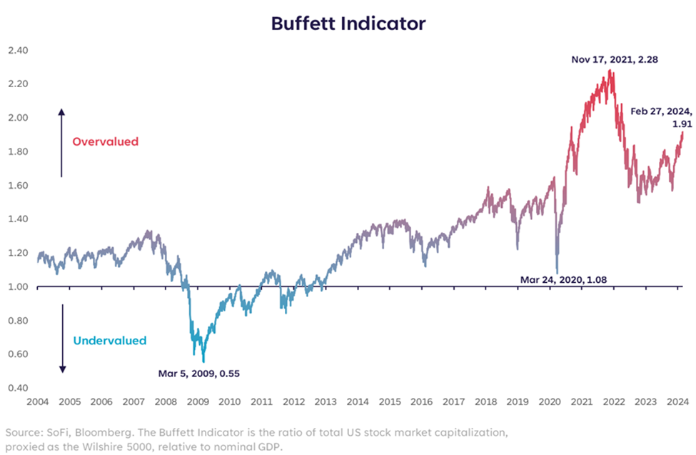 One investor who undoubtedly knows more than most about market environments and opportunities is the great Warren Buffett. He uses a valuation ratio, coined the “Buffett Indicator”, that compares the market cap of the Wilshire 5000 index to U.S. nominal GDP.