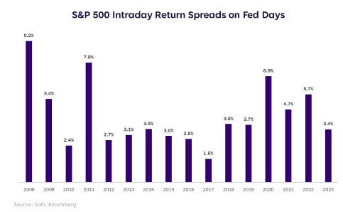 The intraday max and min returns for each data point, and compares the reactions during 2022 with those in 2023, as well as the beginning of 2024. Evidently, CPI reports are no longer as volatility-inducing, with the widest intraday return spread falling from 10.2% in 2022 to 3.4% in 2023-2024. Meanwhile, jobs reports have maintained their ability to induce volatility, with the widest intraday return spread only moving from 5.4% in 2022 to 4.4% in 2023-2024.