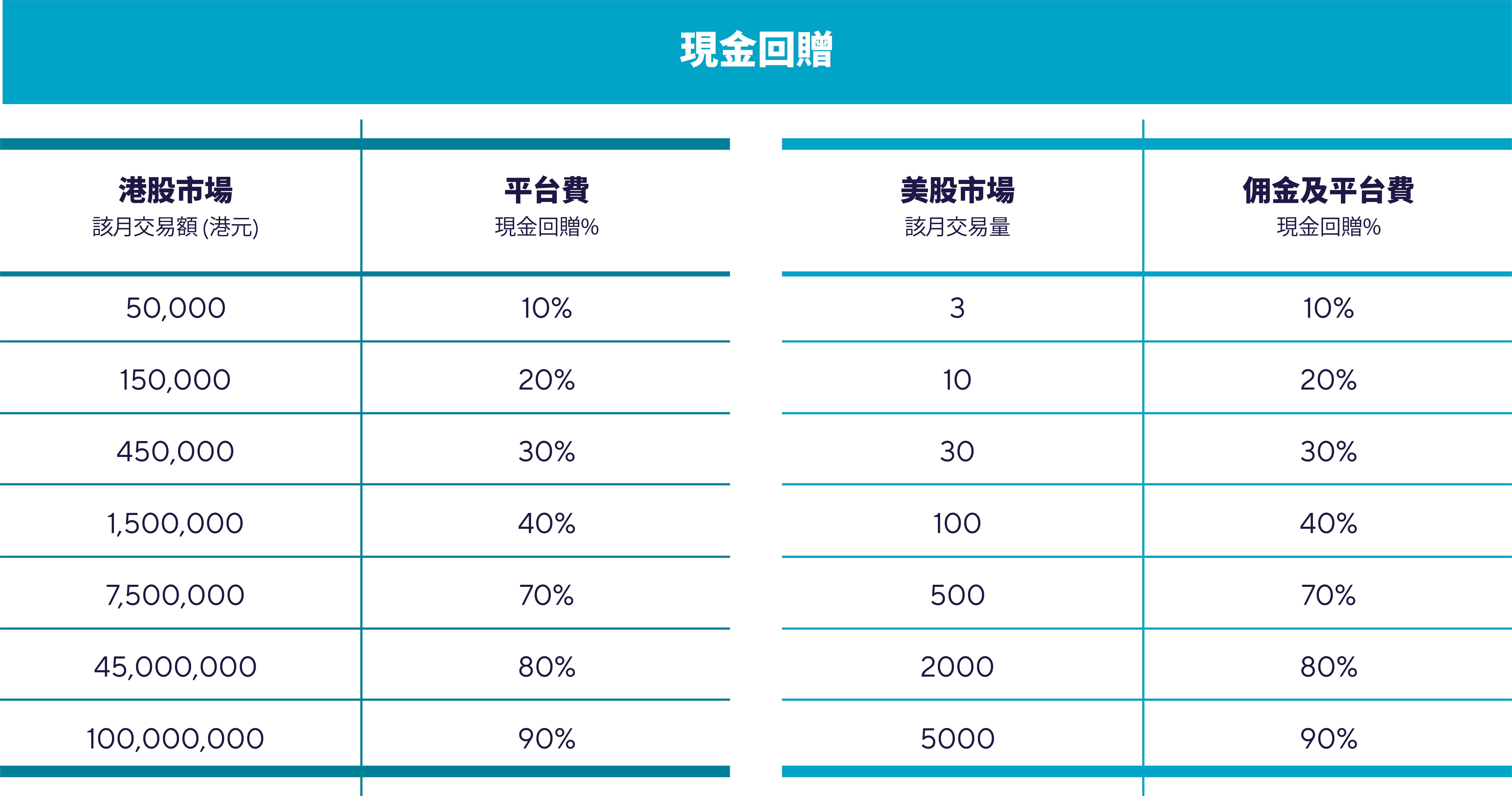 讓我們為港股市場及美股市場分別舉個例子來說明新收費和現金回贈獎勵是如何運作的: