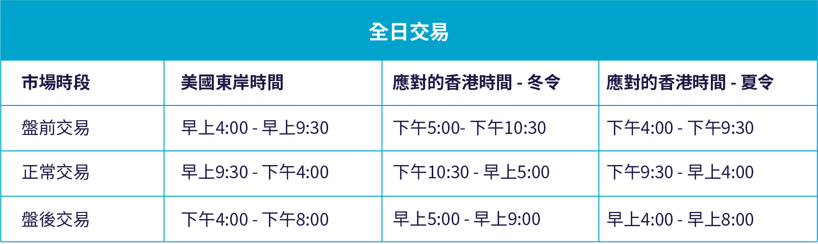 請注意,由於延長交易時段交易量較低,波動性會較主要交易時段明顯較高,大家於下單前應進行徹底的個人風險評估。